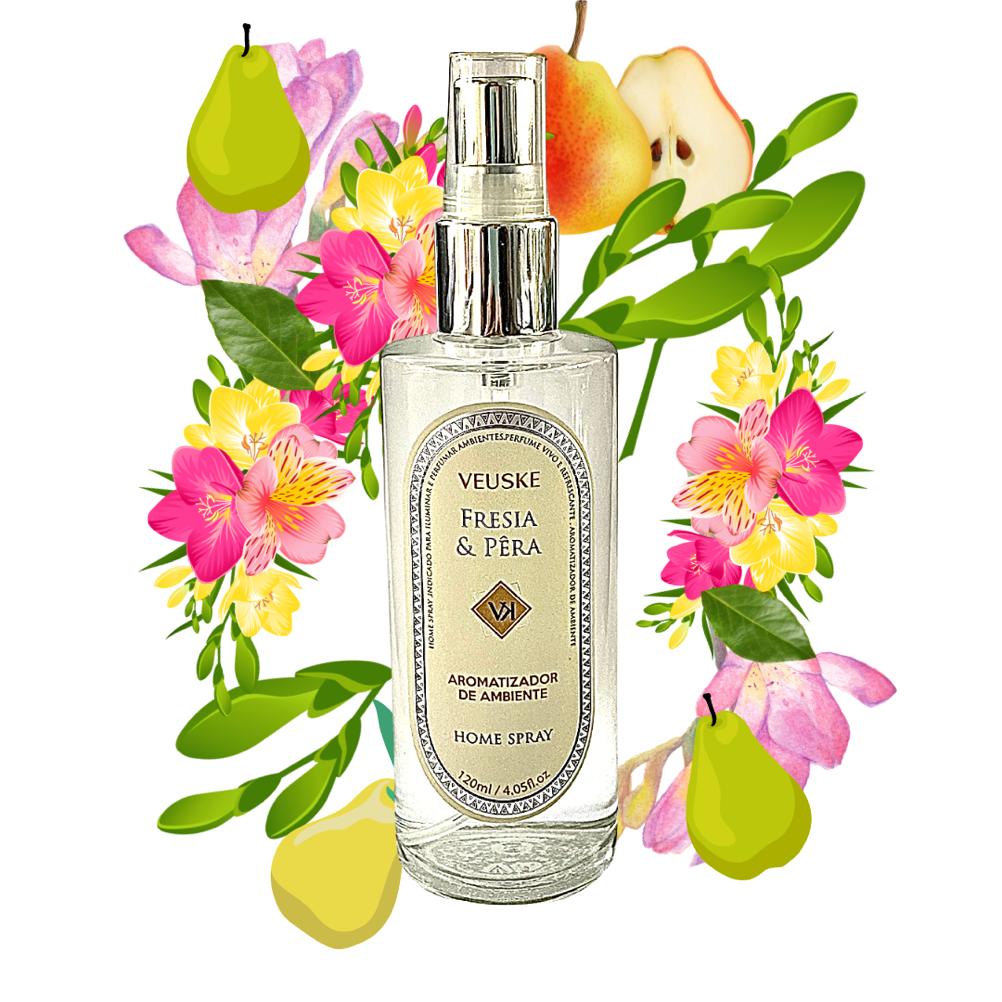 O Home Spray Frésia & Pêra Veuske 120ml traz um aroma frutado com a presença da pêra Fresca, aquosa e deliciosa. A Frésia traz um aroma marcante, fresco levemente picante. Um perfume poderoso deixa o ambiente elegante com um ar chique. Perfeito para qualquer ocasião do ano. Aroma totalmente versátil e magnifico.